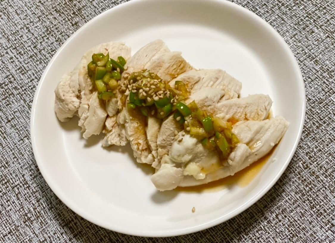 せっかくよだれ鶏風タレを作ってみたので、茹でた鶏むね肉にもかけて食べてみました。