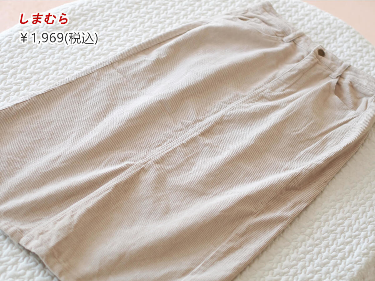 冬の着こなしに似合うコーデュロイ生地でできたスカート。