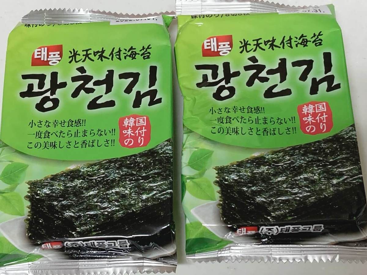 ⑤韓国海苔1パックをポリ袋に入れ、手でクシャクシャと細かくする
