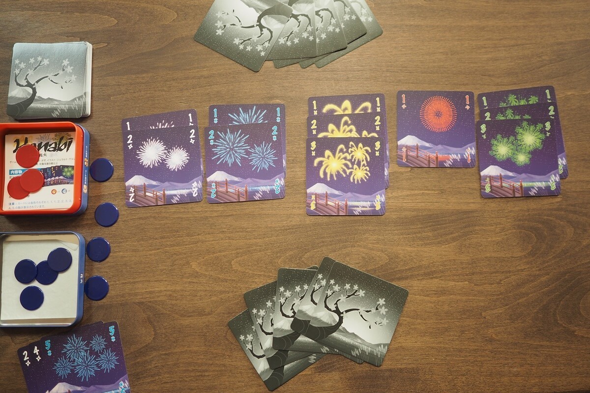 大事故を防ぐためには同じ色の花火を数字順に並べなければなりませんが、プレイヤーは自分の手札を見ることができません。他のプレイヤーに手札の情報を教えてもらいながら、正しい順番にカードを並べて素敵な花火を完成させましょう。