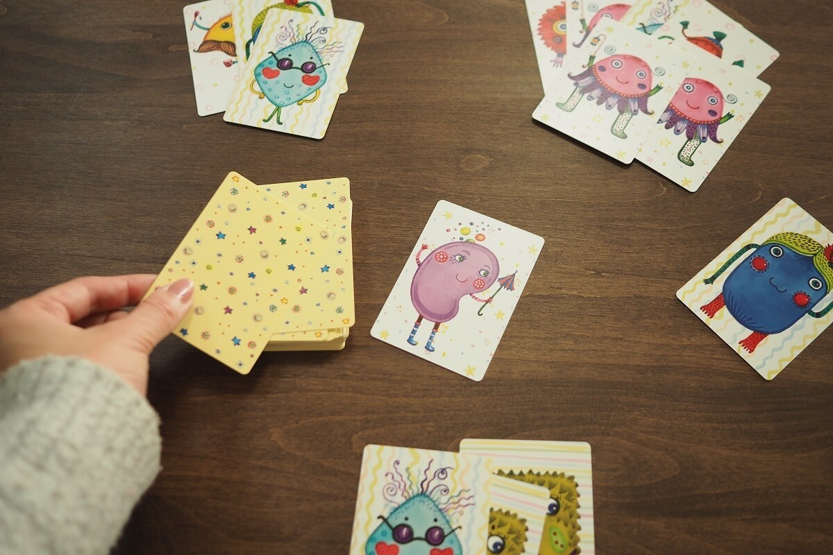まずは、1ゲームが10分くらいの短くて何度も繰り返しできるものから始めるとよいでしょう。 なかでもおすすめなのが「ドブル」。 ひとつのゲームで5つの遊び方があり、「ドラえもん」や「ポケモン」「アナ雪」などのアニメキャラクター版も出ているのでお子様が遊びやすいです。