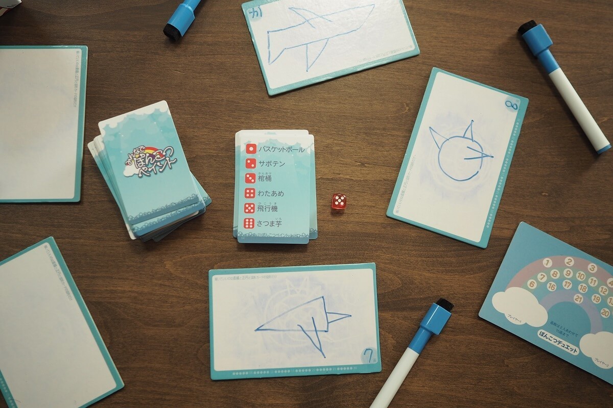 「みんなでぽんこつペイント」は、「直線」と「正円」だけでお題に指定された物を表現するお絵かき系ボードゲーム。参加メンバーのうち1人が回答者となり、それ以外が描き手となってゲームスタート。