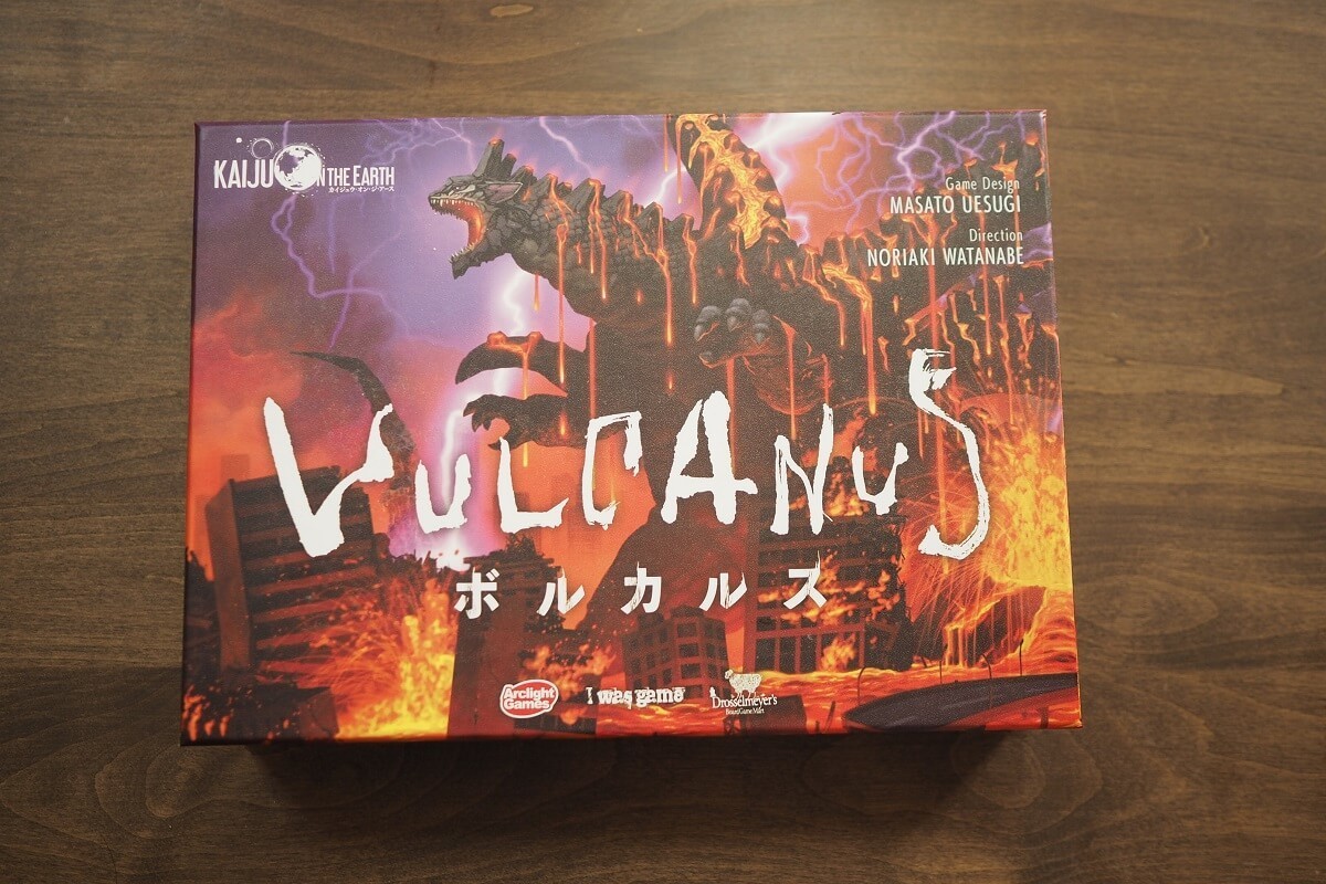 富士山の火口から突如現れた巨大怪獣「ボルカルス」と人間が戦う非対称の対戦ボードゲーム。プレイヤーは怪獣1名と人間側1~3名に分かれて首都東京を舞台に激しい戦闘を繰り広げます。人間側のプレイヤーが多いのですが、"あの怪獣王"にそっくりなボルカルスが強すぎるため絶望的な戦いを強いられることに…。