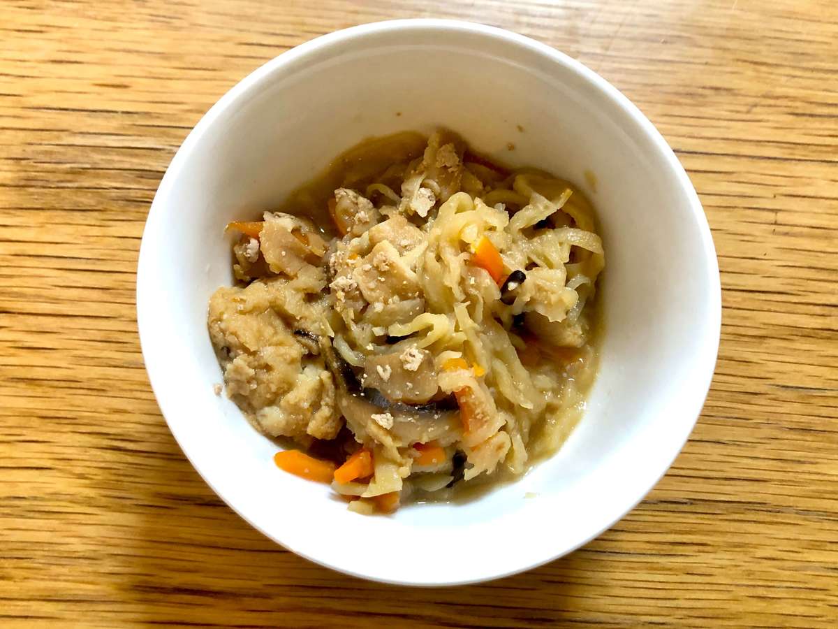 切り干し大根・厚揚げ・豚肉にだしが染み込んでいます。そもそも私は切り干し大根という料理は、どの具も同じ味に染め上がって、味が一体化する料理だと思っていました。