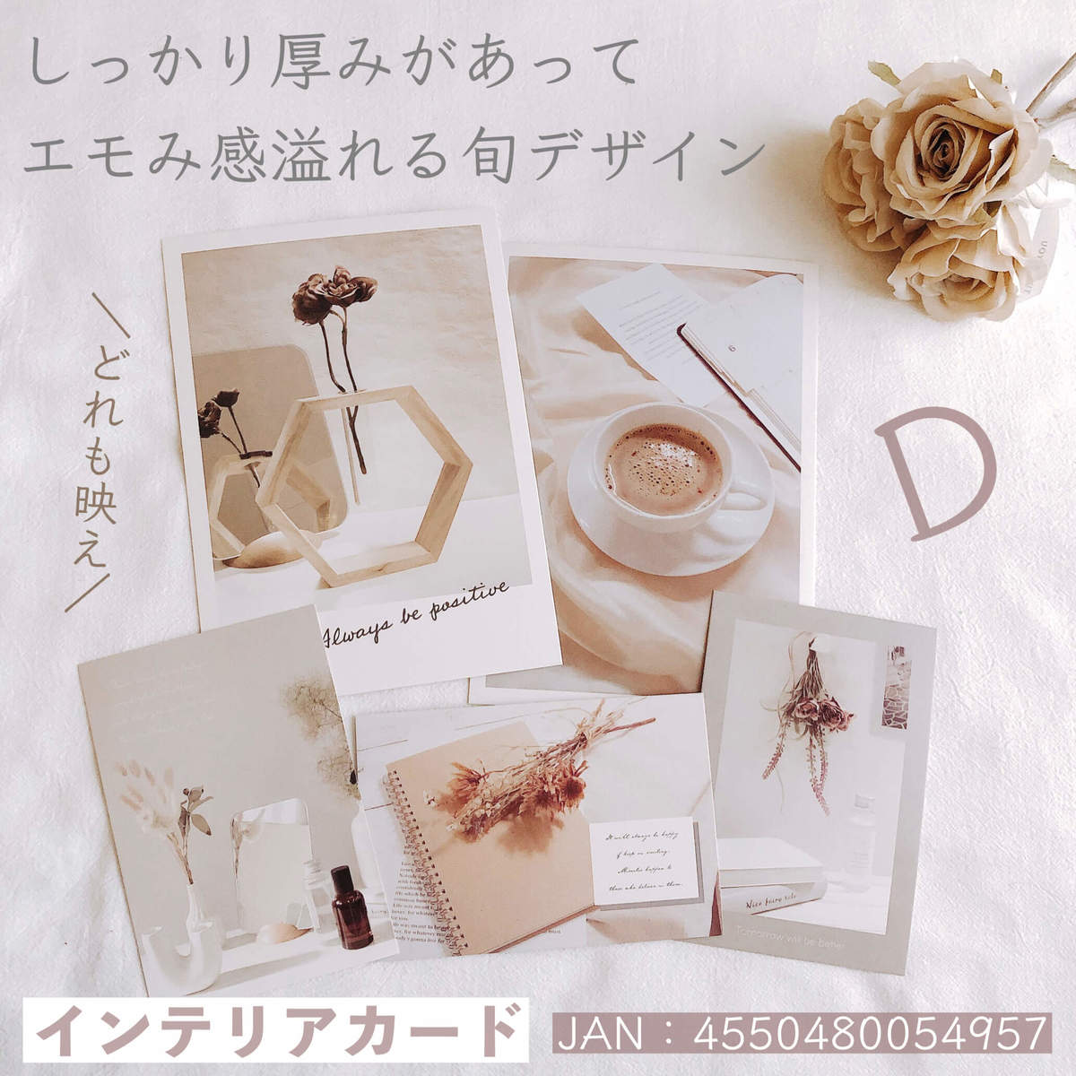 しっかり厚みのあるインテリアカードで、旬なデザイン。どれも映える写真なので見ているだけでうっとりしてしまいます。