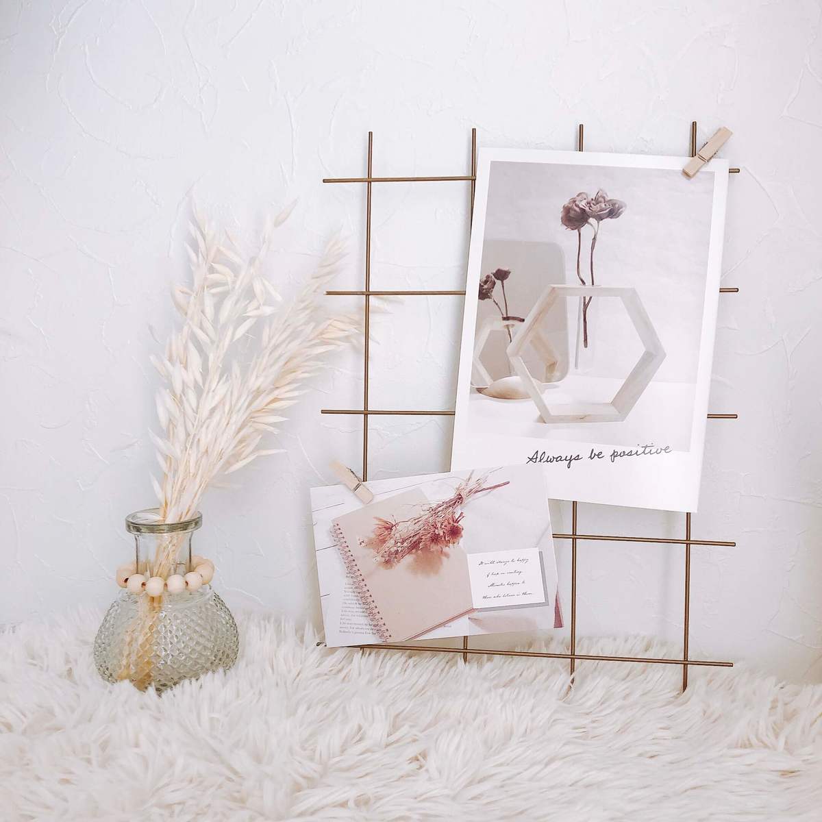デザインも良く、光沢があって高見えのインテリアカード。飾り方もいろいろ楽しめて、5枚セット110円(税込)は破格ではないでしょうか。