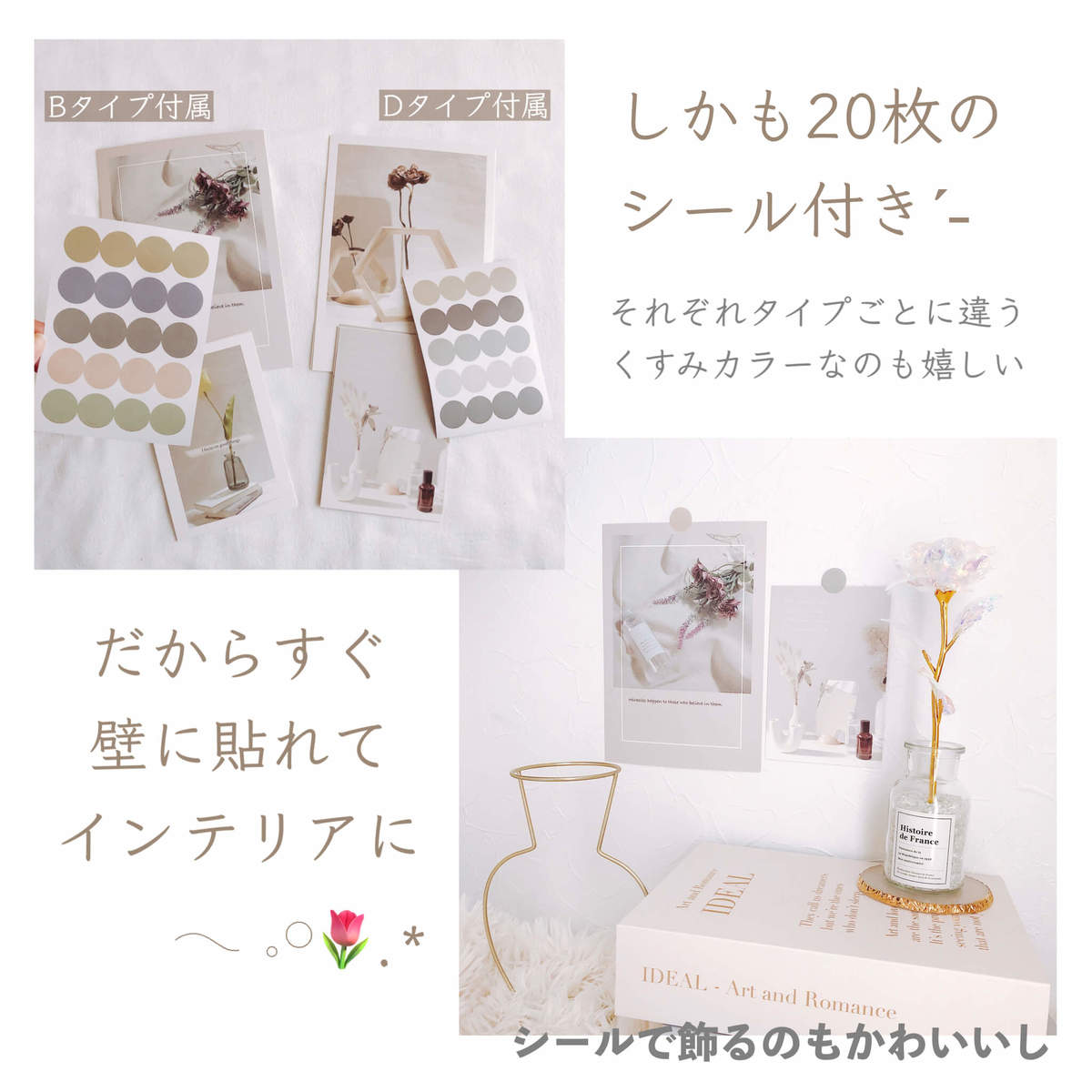 シール付き、そのまま壁に貼ってインテリアに♪