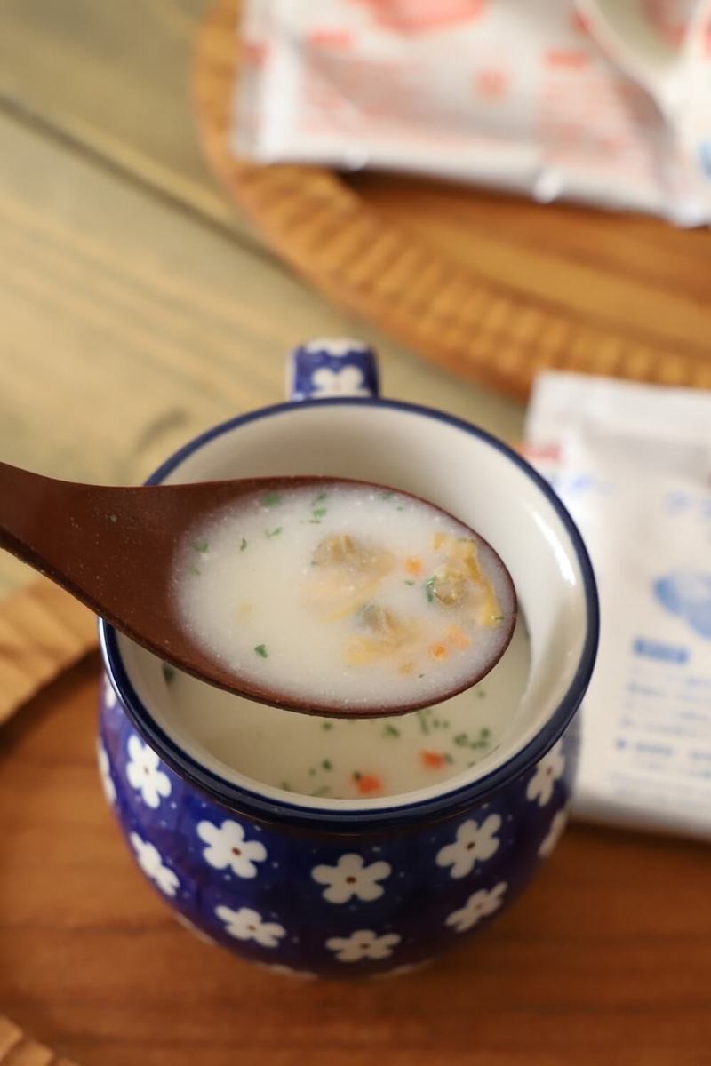お湯で溶かしただけとは思えないくらい味がしっかりとしていて、貝のうま味もしっかりと感じられて大満足の美味しさですよ。