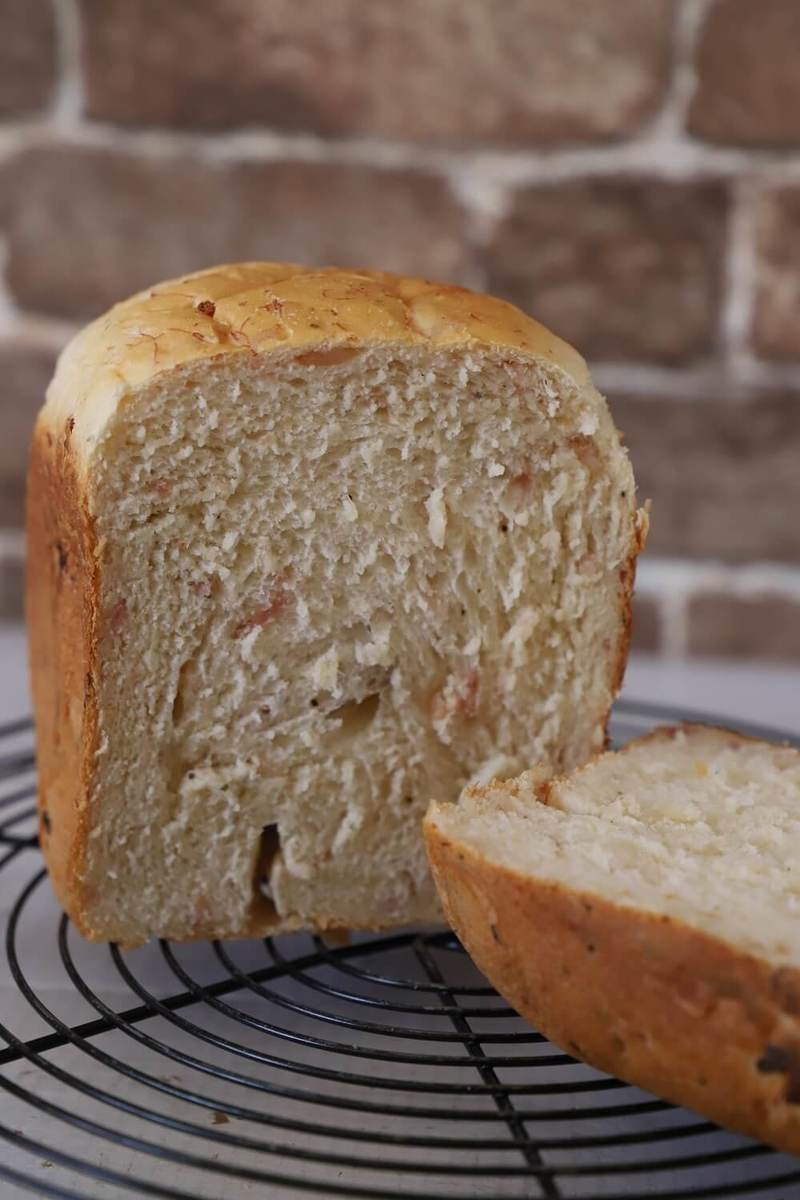 時間があるときは、さらにベーコンを加えてホームベーカリーで焼き上げるのもおすすめ。