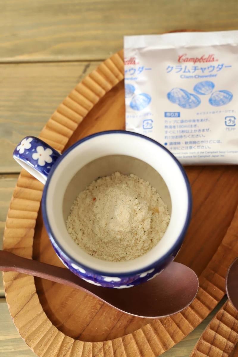 クラムチャウダーを使うだけで、手軽に風味をあげられます。