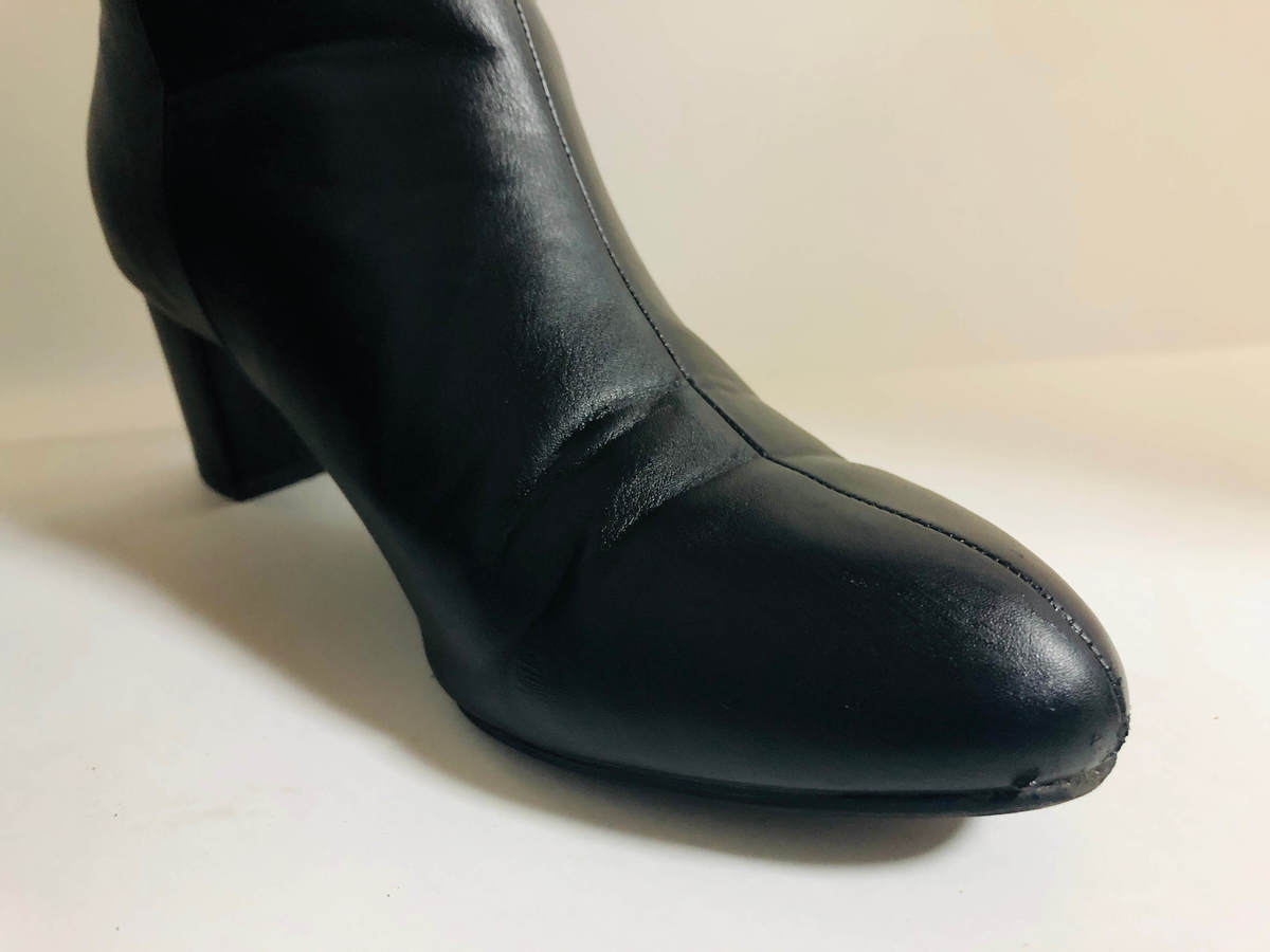 ブーツ先端の擦り傷と色剥げが酷かった箇所を比較してみました。