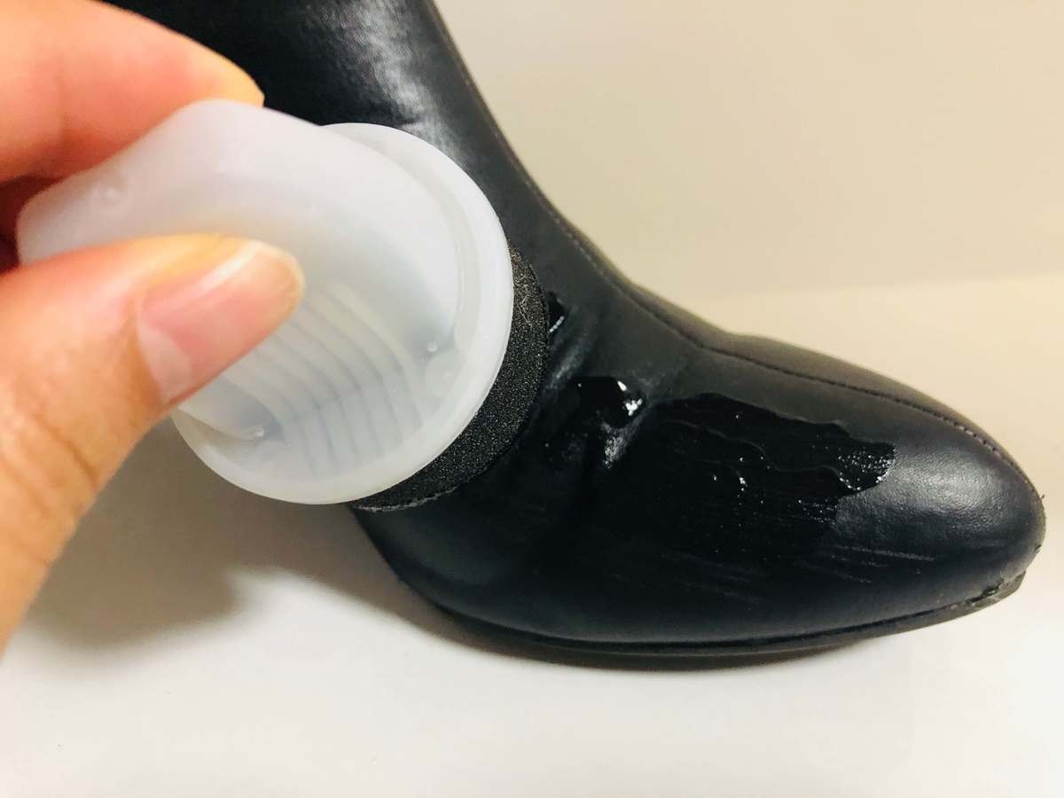 少量ずつ伸ばして傷やヒール部分、全体にまんべんなく塗り込んでいきます。気になる箇所は薄く塗り重ねていけばOK!