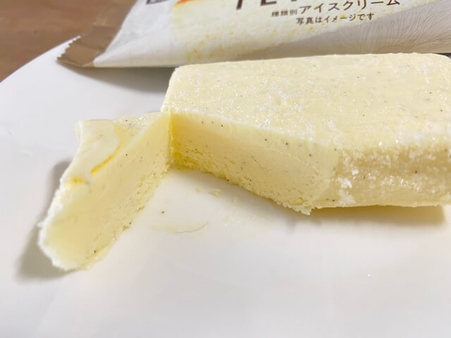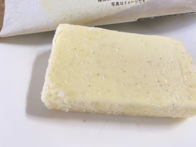 口当たりは、通常のバニラアイスなどよりも重めで、チーズ感があります。