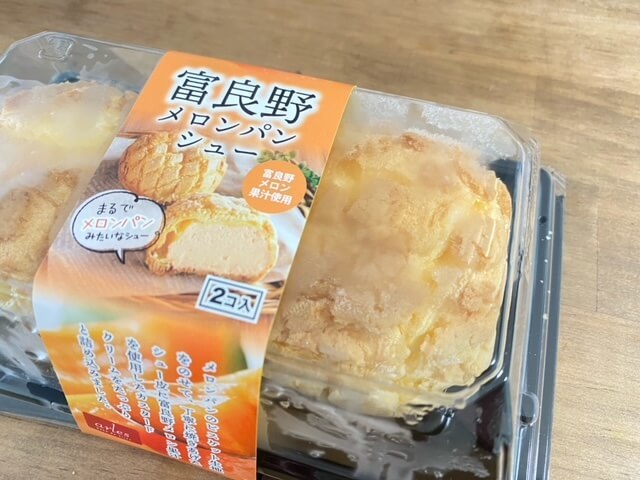 メロンパンのようなビスケット生地を乗せて焼き上げたシュー皮と、富良野メロン果汁入りのクリームが最大の特徴です。