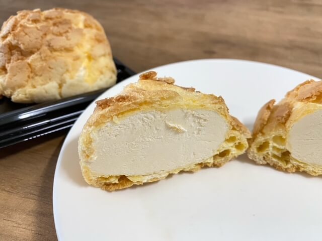 冷凍されているということもあり、シュー皮はサクサクではなくしっとりとした食感。でも、シュー皮の香ばしさは健在です!