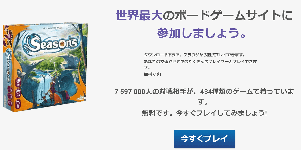 ボードゲームアリーナ(Board Game Arena)は、通称「BGA」と呼ばれているオンラインのボードゲームプラットフォームです。全てのゲームがブラウザ上でプレイできるようになっており、ソフトをダウンロードする必要はありません。アカウントを登録すれば基本プレイ無料で友達や世界中のプレイヤーと遊べます。