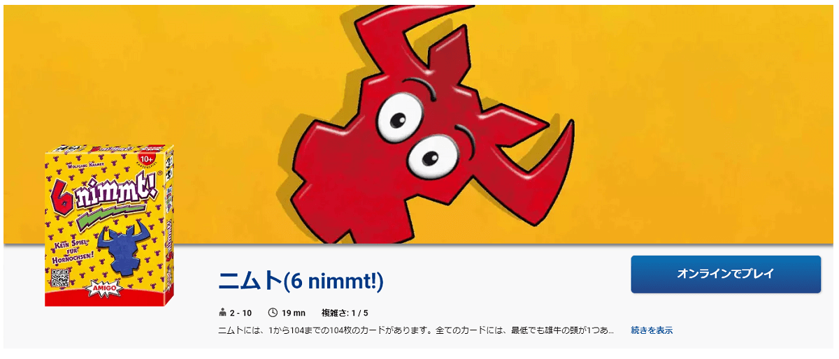 | ゲームの魅力 | ルールがシンプルで、多人数で「その数字持ってたのかよー」「これ出したかったのに」とワイワイやるのが楽しいゲームです。 |