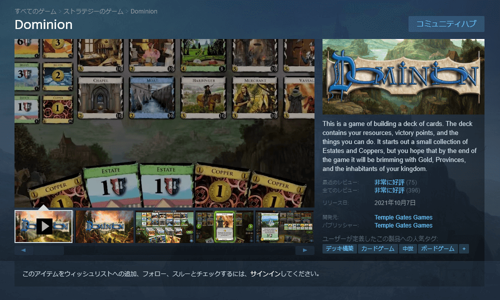 | ゲーム名 | ドミニオン(アーリーアクセス版) |
