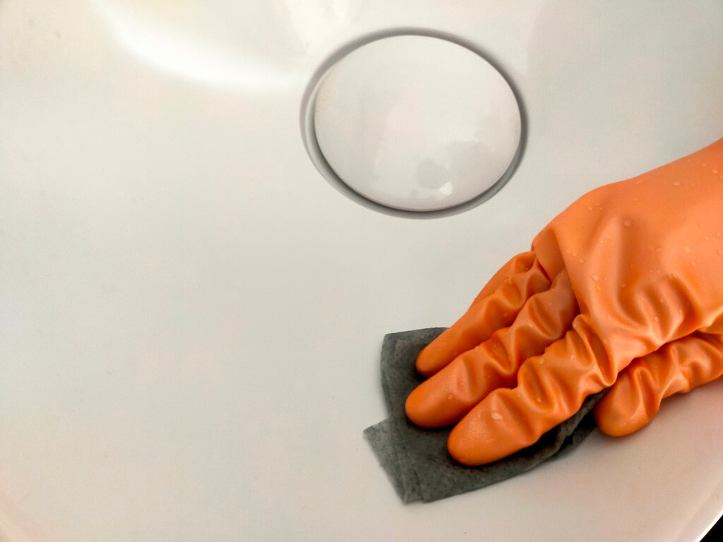 このスクラブクロス、そのまま捨てるのは勿体ない!ということで、洗面台もきれいにしてみました。