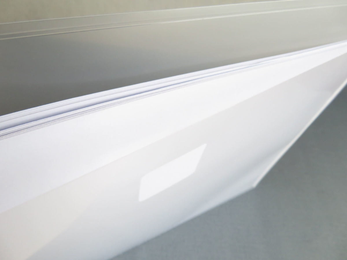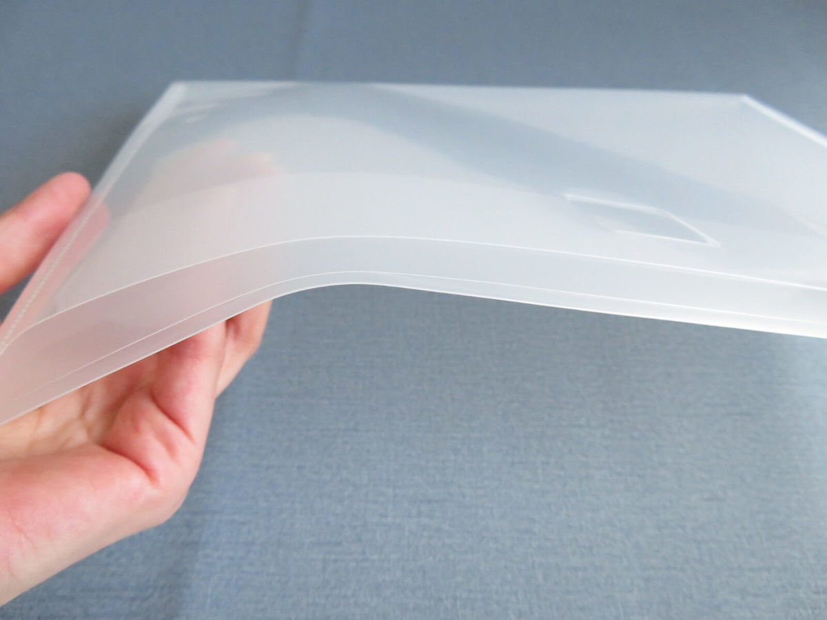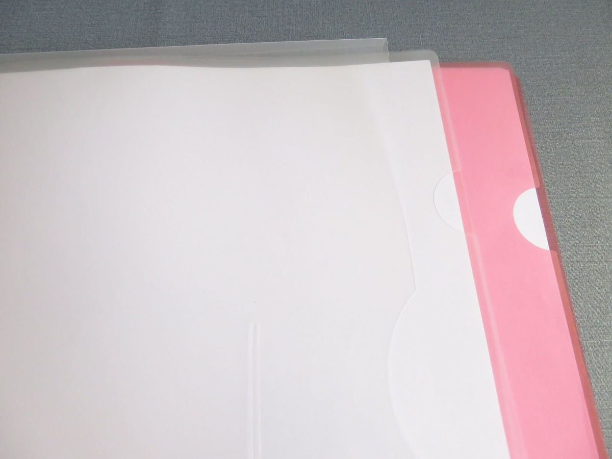 通常のクリアファイルをワンランクしっかりさせたような素材感で、安いクリアファイルにありがちなペラペラ感がありません。ビジネスシーンでも安心して使えます。