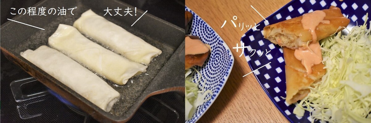 さらに、自分で作ると揚げている最中に爆発してこわい思いをすることも多い春巻き、嬉しいことに今のところこの春巻きでは爆発したことは一度もありません!