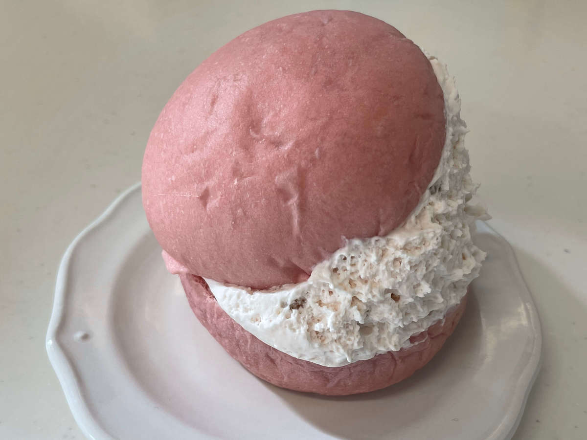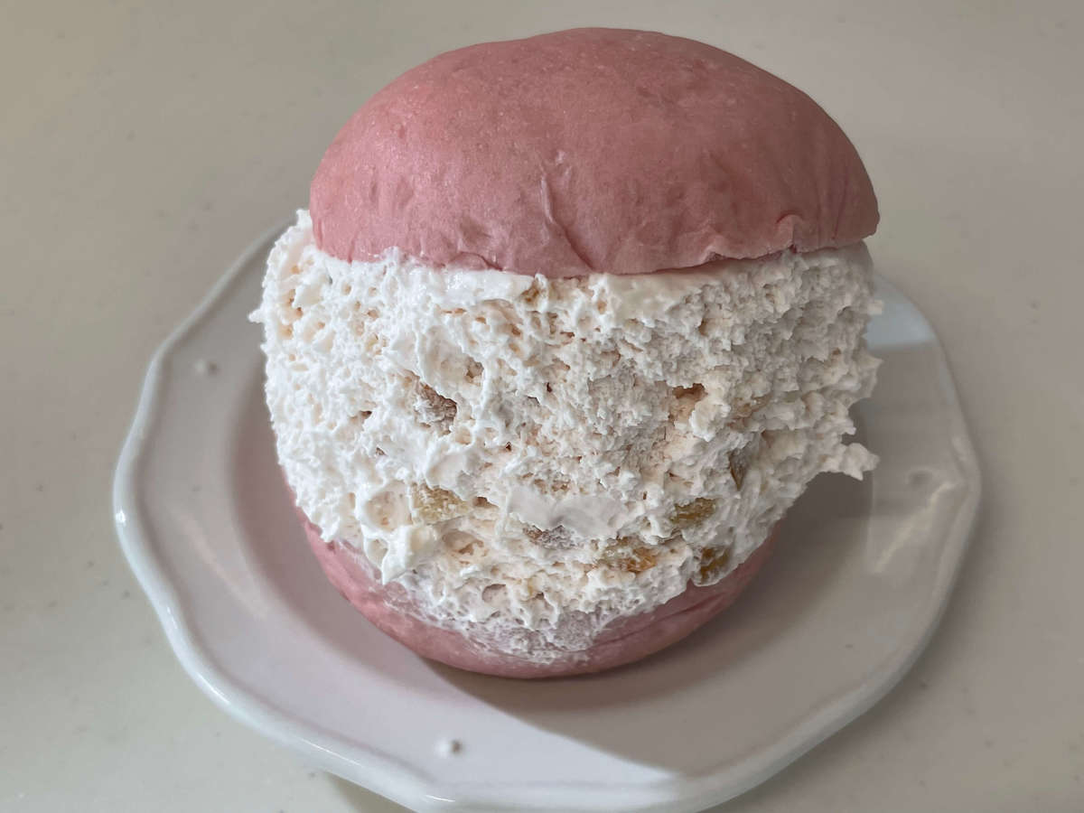 ストロベリーカラーのブリオッシュ生地に、たっぷりと入ったクリームは、見た目も可愛くインパクトがあり子どもも喜びそう!