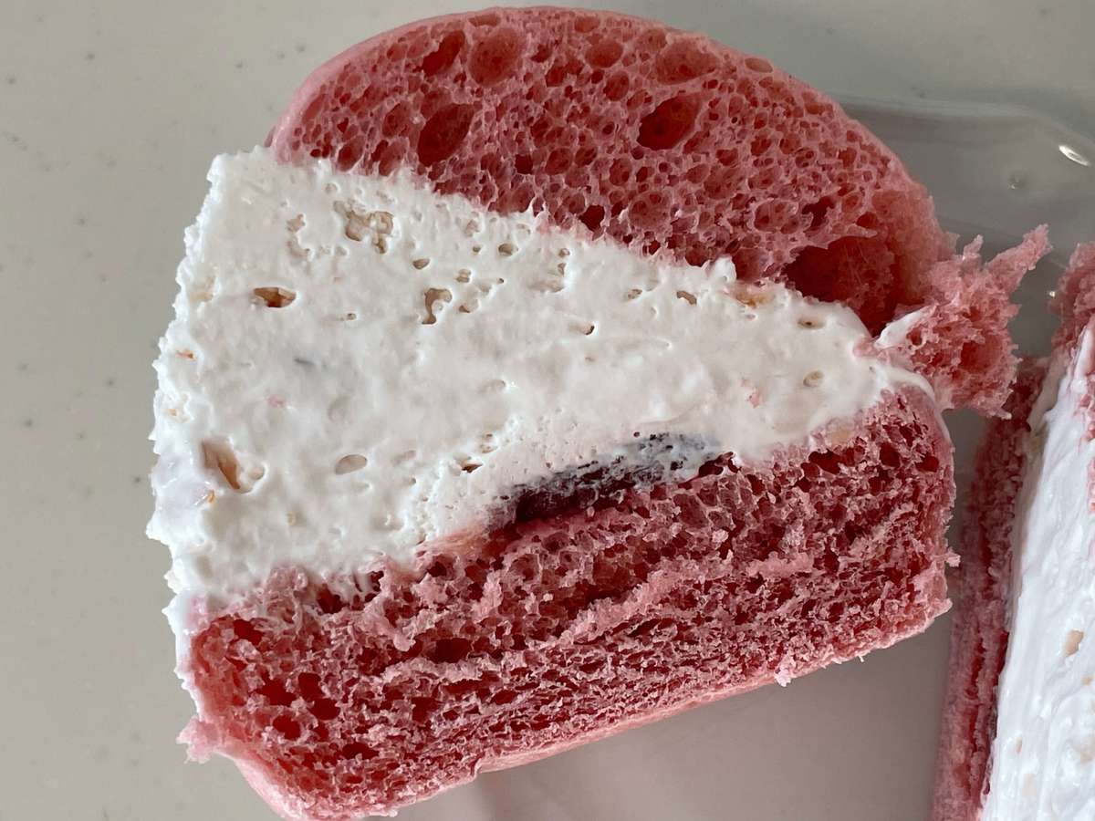 カットしてみると、ホイップの下にストロベリージュレが入っていました。