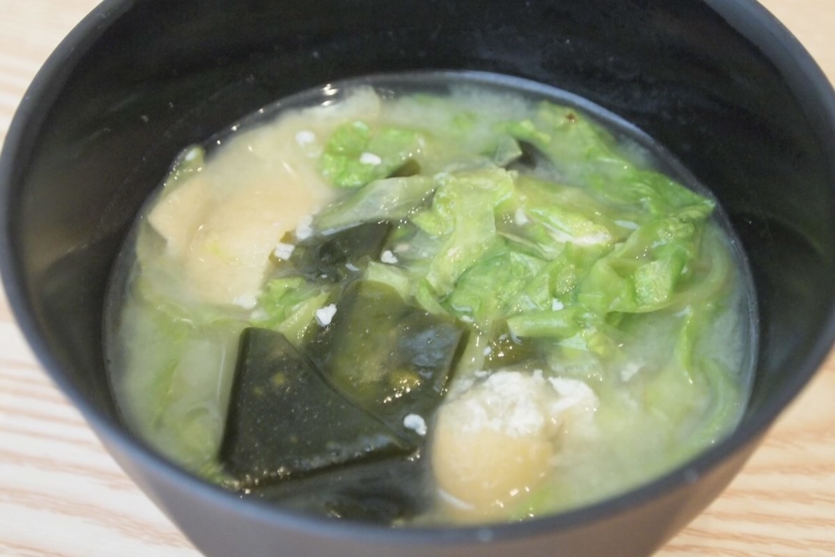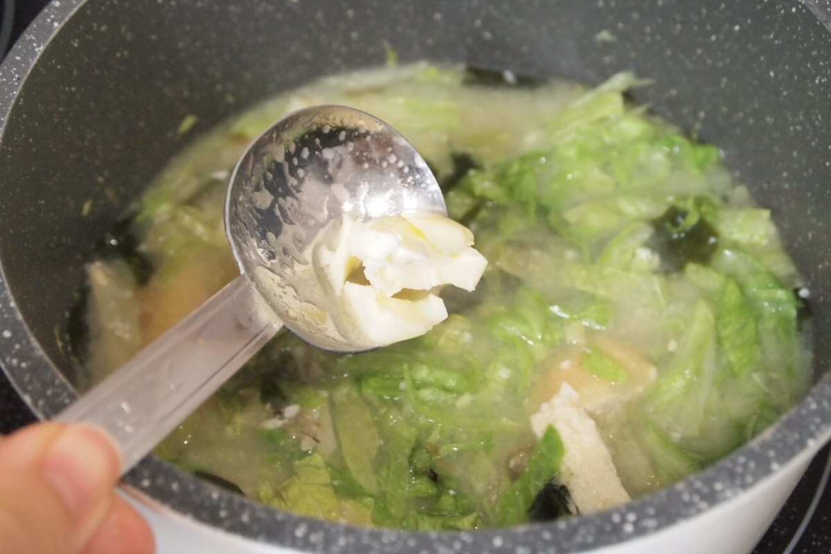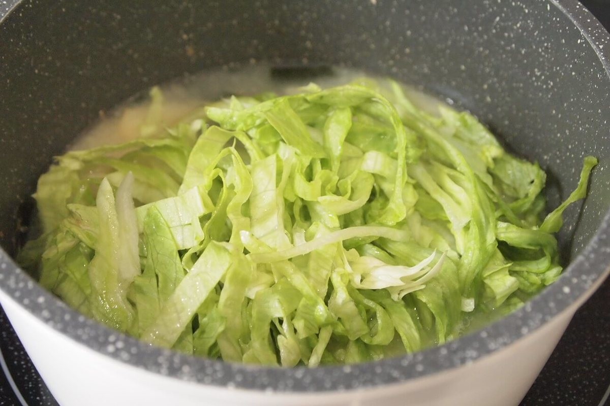 2日目の味噌汁アレンジ②レタスを刻んで、味噌汁に入れる