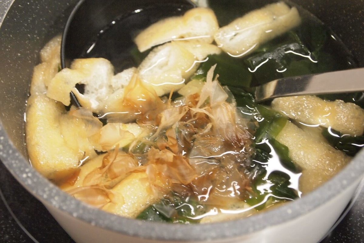 顆粒出汁や、出汁入りの味噌でも十分おいしいですが、やはりかつお、昆布などを使って出汁をとれば、よりおいしさがアップしますよ。