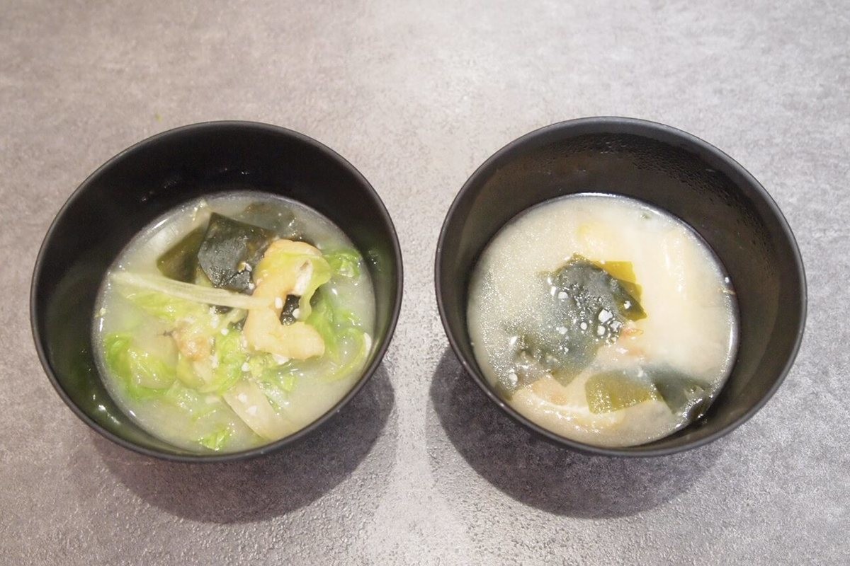 せっかくなので、裏技でアレンジした2日目の味噌汁と、何もしていない2日目の味噌汁を飲み比べてみました。