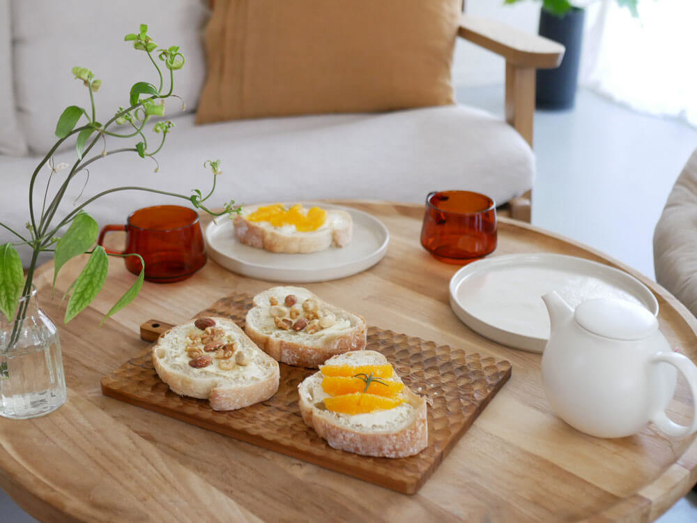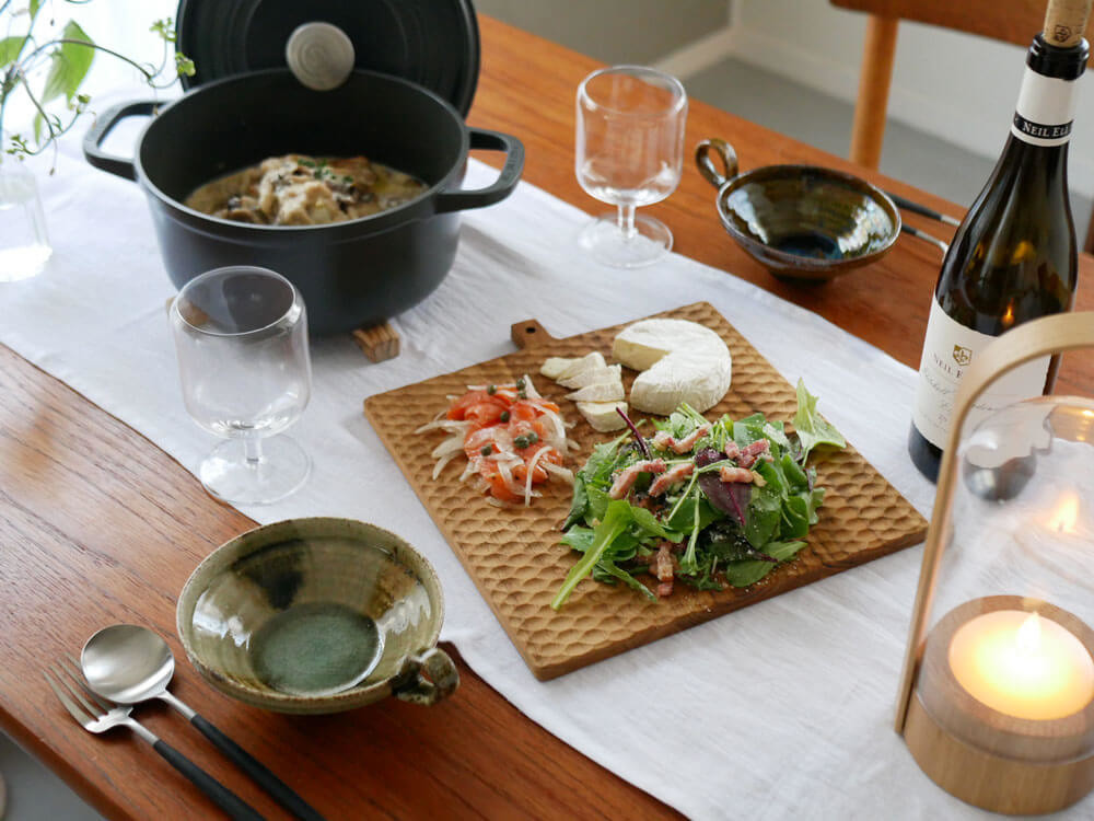 何をのせても表情豊かに演出してくれるから、食卓がパッと華やかに。パーティーなど人が集まる時にサービングボードとしてひと役買ってくれそうですね。