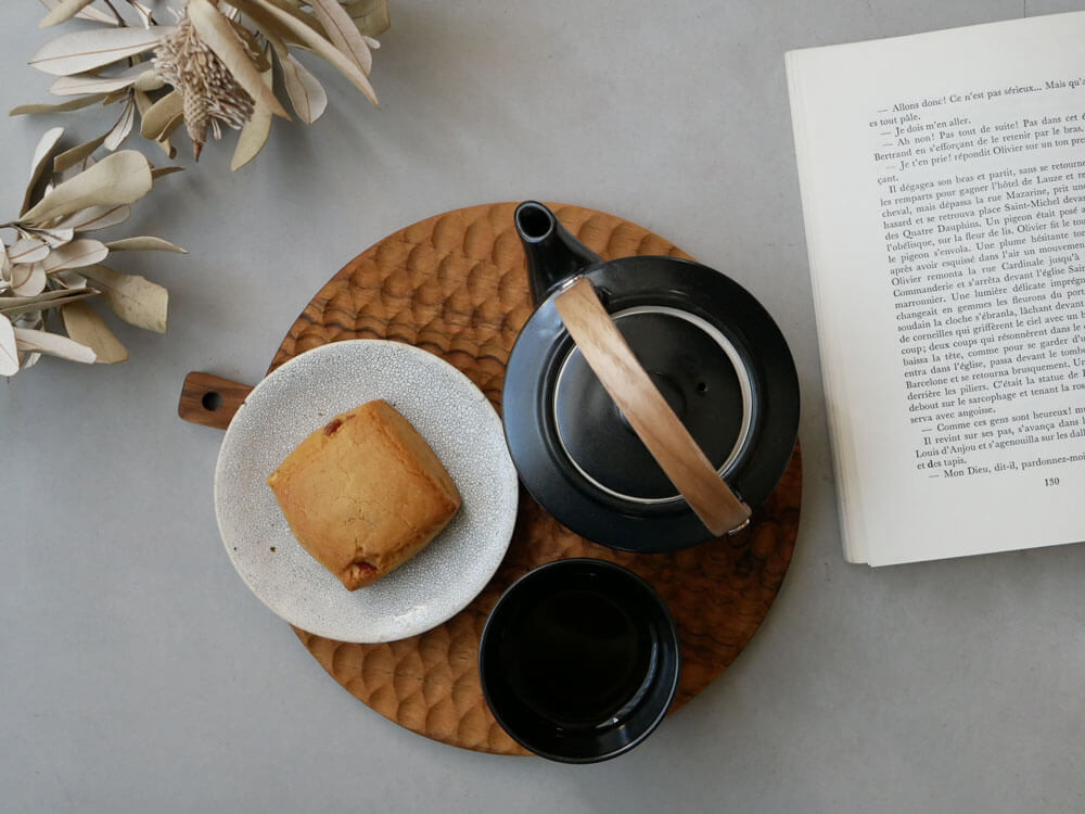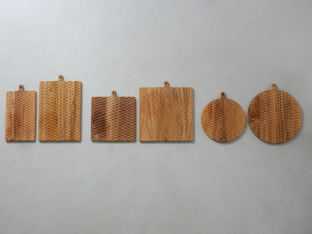「リバーシブルチークカッティングボード」は置く面で表情が変わり、フラット面はカッティングボードや鍋敷きとして、彫った面はパンプレートと、用途だけでなく空間をも演出してくれるから、飾り置きも楽しくなる1枚です。