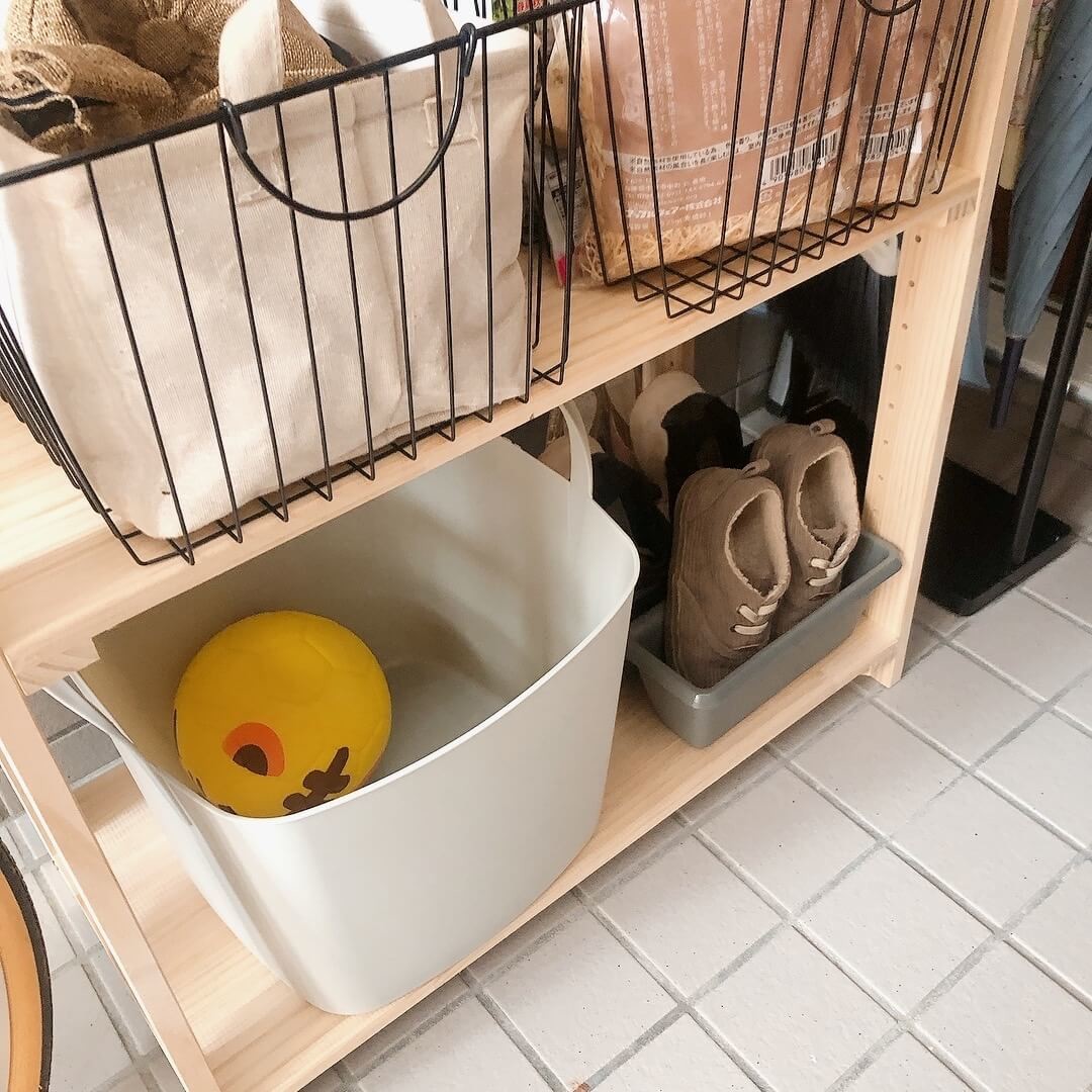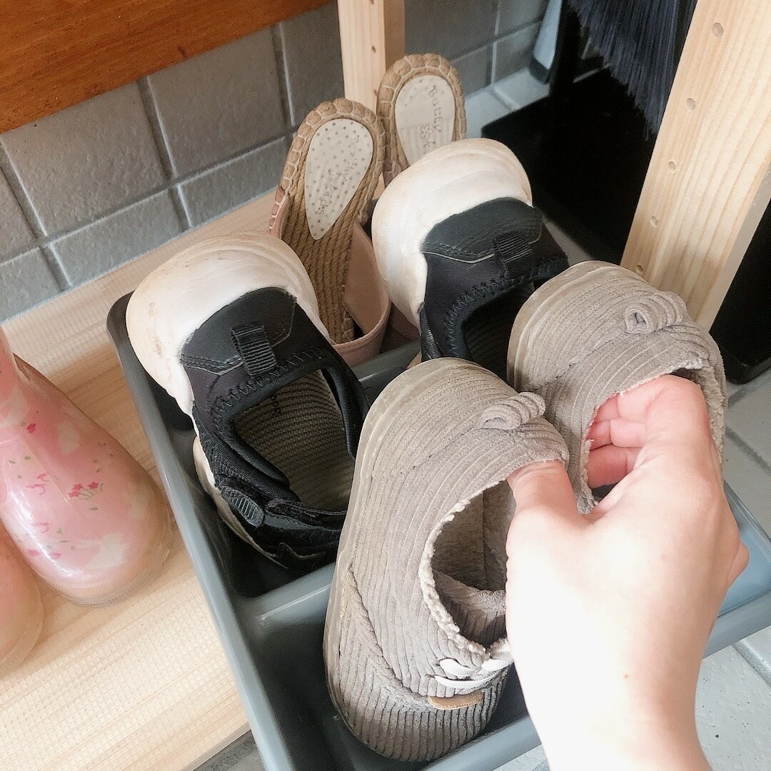 子どもは自分で靴を出し入れするのが難しいので、よく使う靴は玄関に出しっぱなしにしているのですが、まあ散らかりますよね!