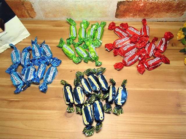 業務スーパーのカジュアルアソートチョコレートは4種類の味が色別に分けられているので、ダイレクトに好きな味をチョイスできます。