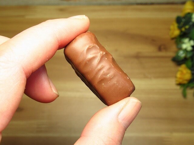1個あたり約3.5センチほどのひと口サイズのチョコレートです。子どもたちのおやつや在宅ワーク中の口さみしいときにもぴったり!