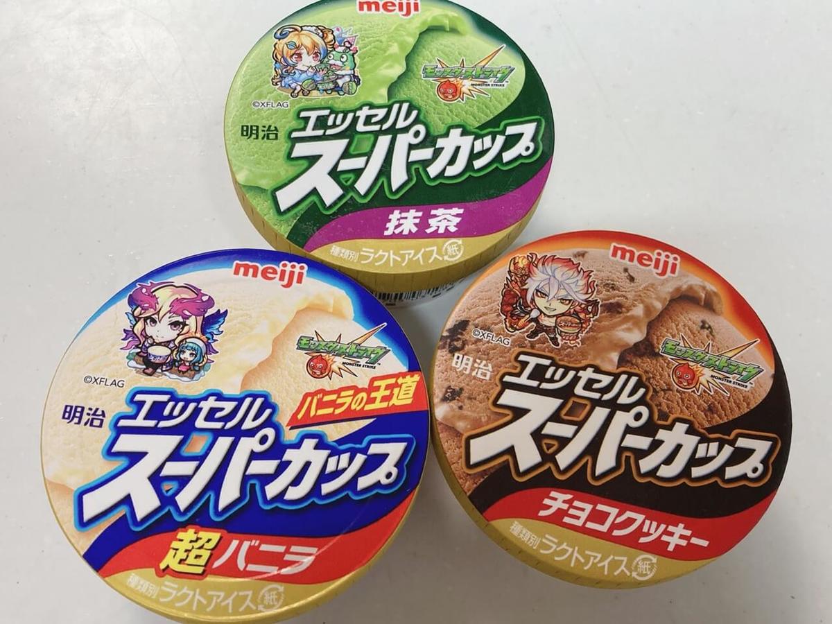 詰めるアイスは、スーパーカップの「超バニラ」「チョコクッキー」「抹茶」の3種。