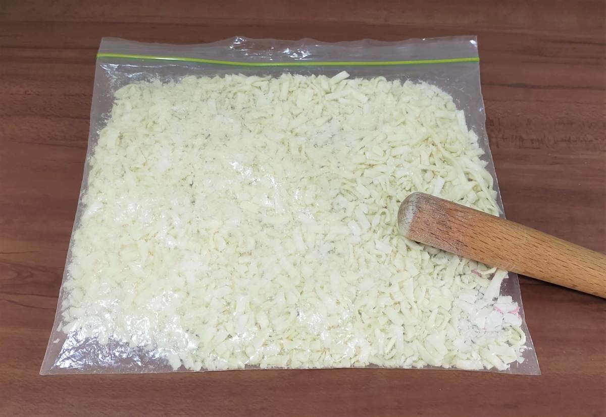 ②麺を袋に入れて砕く。