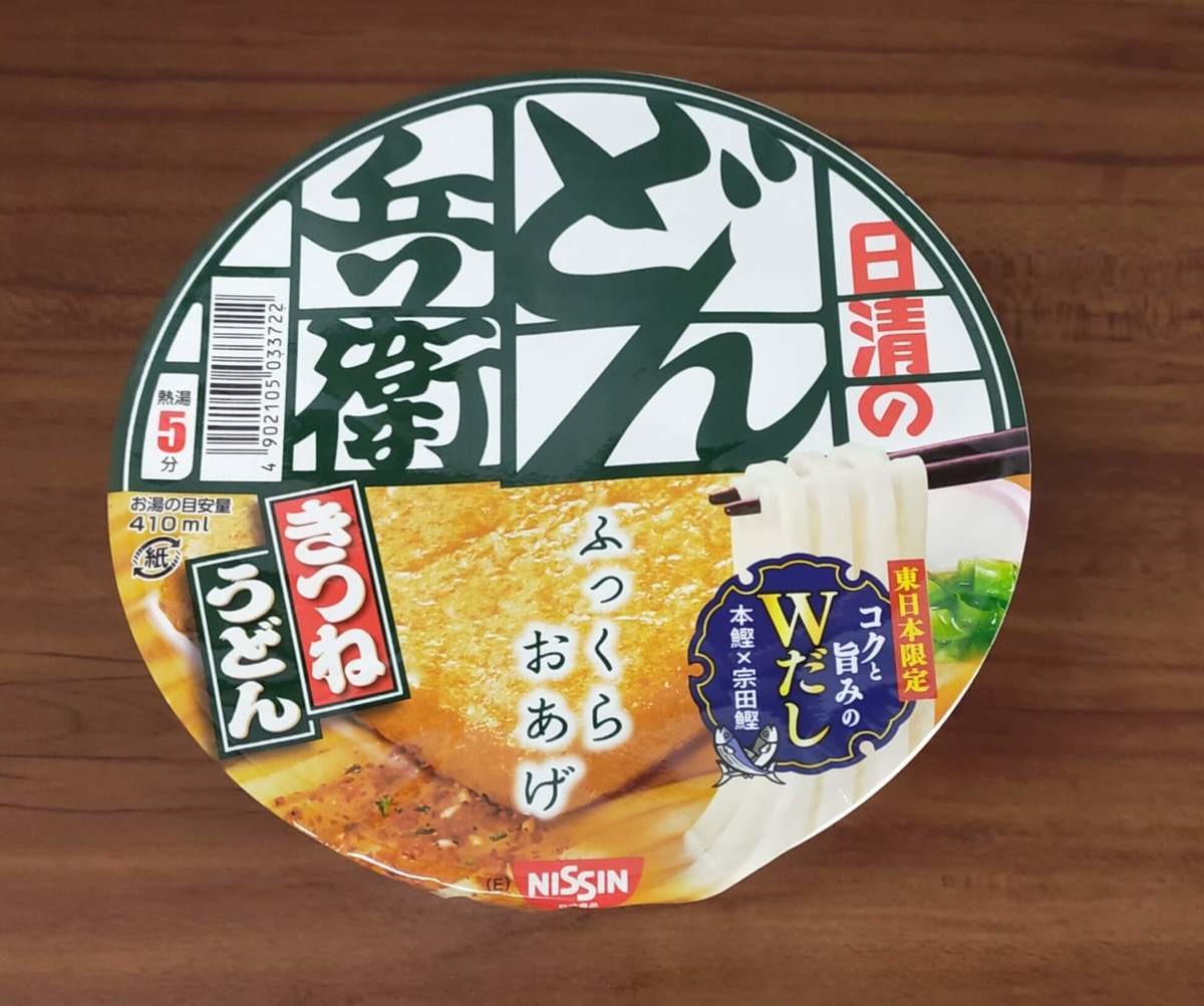 ちゅるんとしたのど越しの麺とふんわり油揚げが美味しい、日清のどん兵衛。