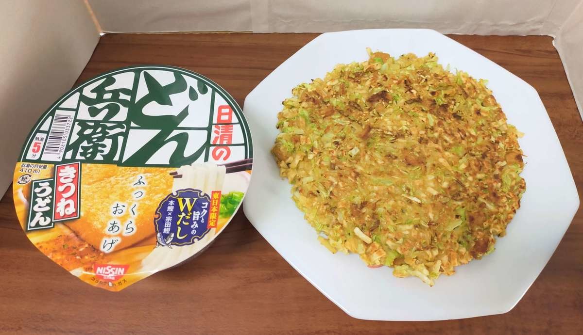 日清の公式アレンジレシピ「どん兵衛お好み焼き」を作って食べてみました。