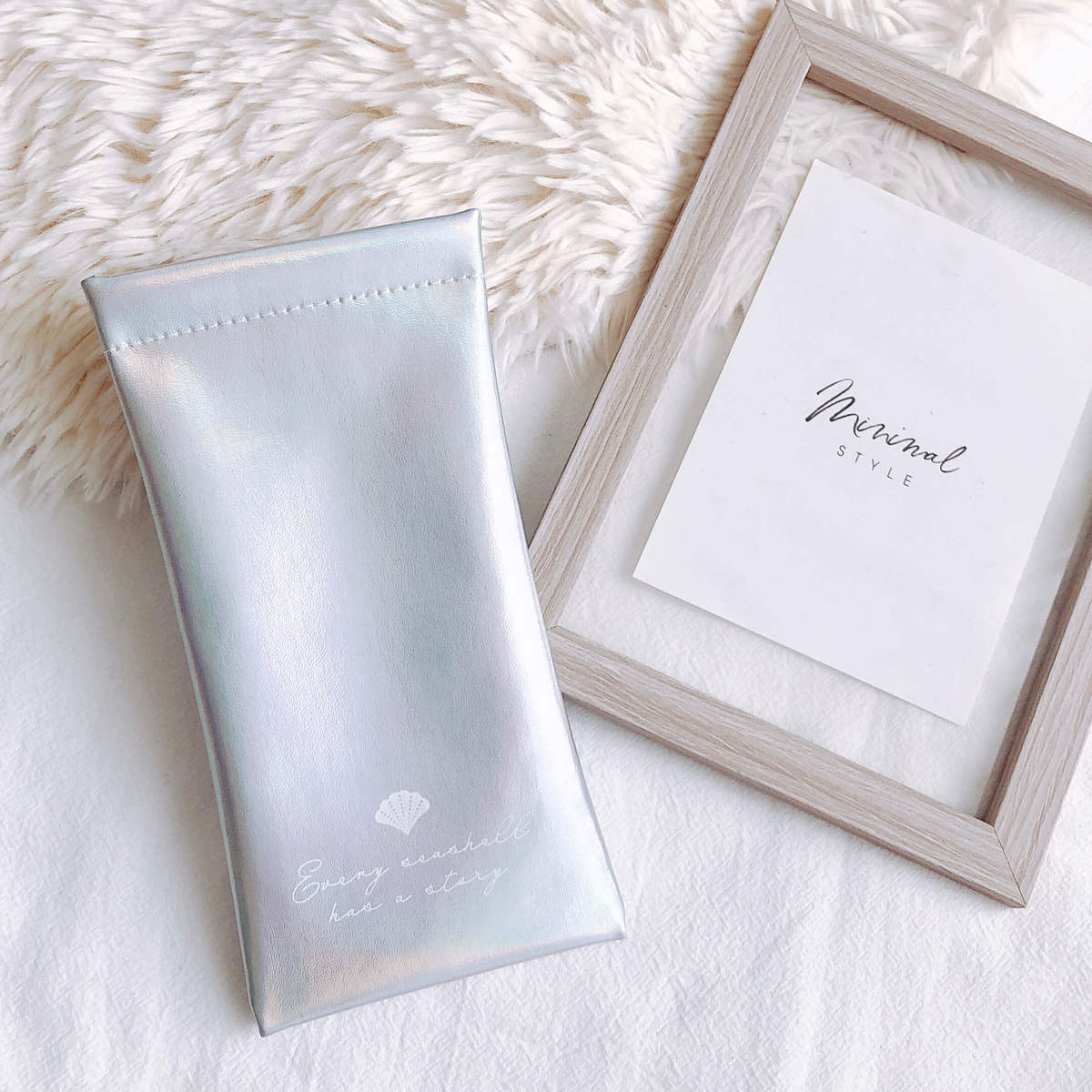 メガネケースは売場で一目惚れ!本物の貝のように、光の当たり具合でオーロラに光ります。