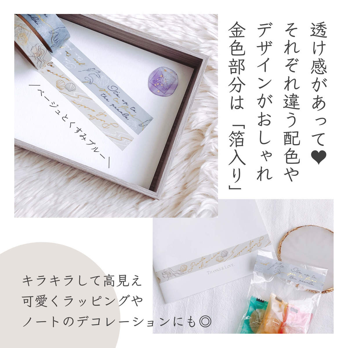 金色部分は、なんと箔入りなんですよ!キラキラしていて高見えです。ラッピングに使ったりノートやスケジュールのデコレーションにもおすすめです♪