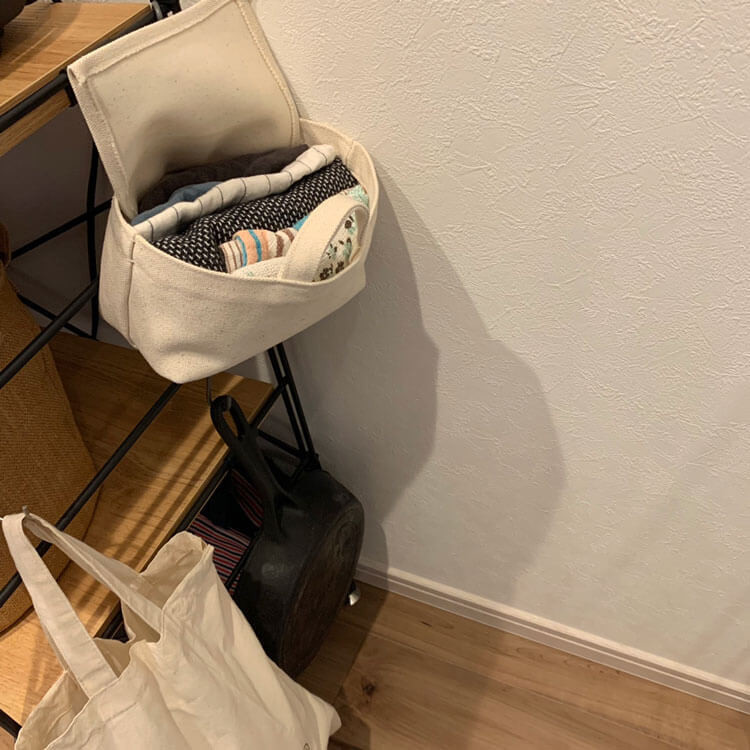インテリアに馴染むナチュラルなバッグなので、ポンポンしまってカバーをすれば見せ置きのままでもとっても可愛い!