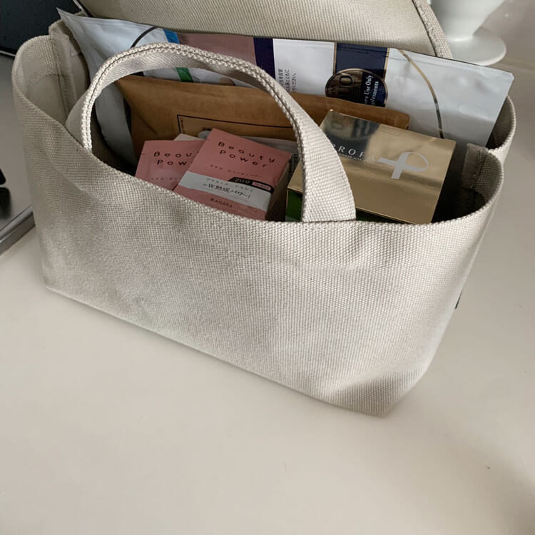 少しサイズオーバーなものがあっても、トートバッグのカバーは帆布素材なので閉まらない心配はありません。