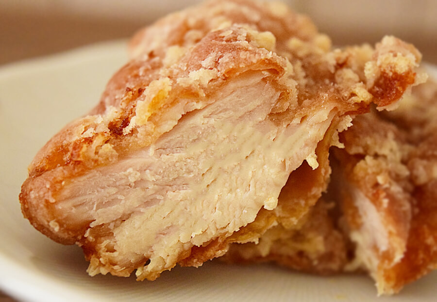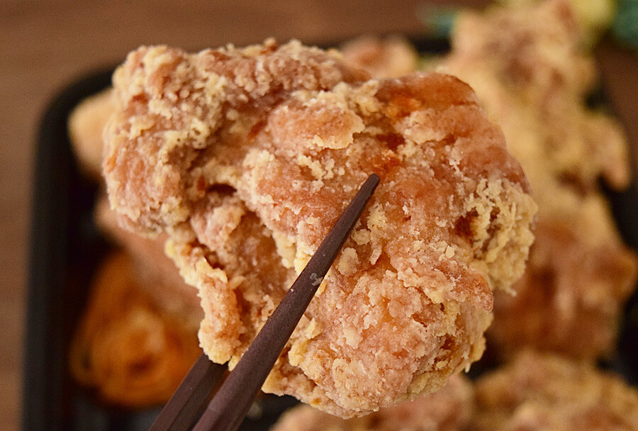 持ち帰ってから30分経過しても、カリッとしている衣。醤油系の味わいでほどよくジューシーな唐揚げです。
