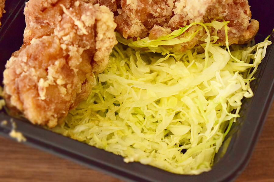 千切りキャベツ。唐揚げの分量が多すぎて足りません.......。