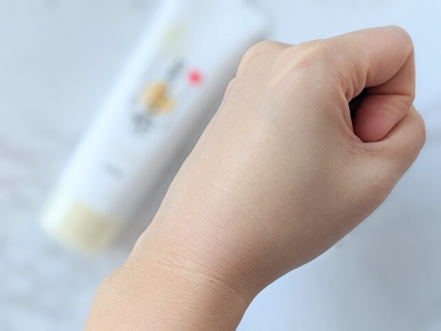 しっとりなめらかな仕上がりなのに、べたつかないので変なテカリがないのもビックリ。実際に顔全体に塗布した後、数分経つと肌にキレイになじんできました。