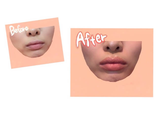 上唇の山をしっかりとることで、整形級M字リップに♡また上唇の唇山から口角にかけて、若干反らせたような輪郭をとると◎