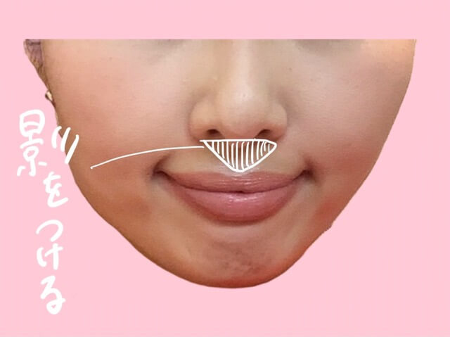 鼻下の距離が長くてのっぺりしている、上唇にボリュームが欲しい、顔にメリハリが欲しい方は人中短縮メイクを取り入れてみても楽しいかもしれません♡