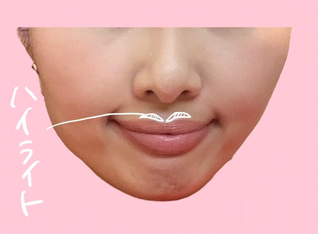 次に、上唇の立体感を出し、鼻下と唇の距離をキュッと短く見せるためにハイライトをのせます。