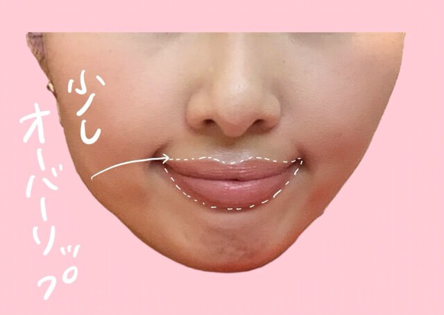 オーバーリップにしすぎると違和感を感じやすいので、本来の唇のフチをなぞるように0.5~1㎜程度リップラインをとるとナチュラルに仕上がります♪